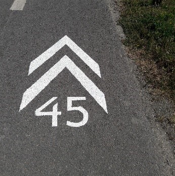 La communauté de communes du Haut Pays Bigouden a amélioré fin mai 2020 la signalisation de la Véloroute V45 par du marquage au sol. Trois marques différents sont répétées régulièrement sur les 16 kilomètres de la Véloroute dans le Haut Pays Bigouden.