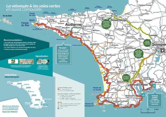 Les passeurs entre l’Ile-Tudy et Loctudy et entre Sainte-Marine et Bénodet proposent l’embarquement des vélos. Ces liaisons maritimes permettent d’abréger l’itinéraire, d’esquiver le Pont de Cornouaille et de créer des boucles en combinant le trajet en bateau avec l’itinéraire terrestre de la Véloroute V5 La Littorale.