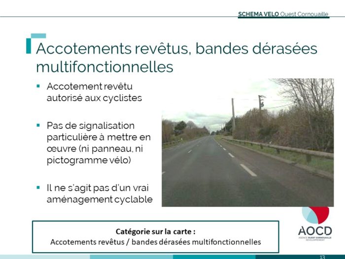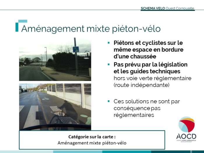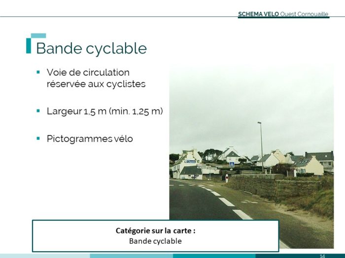 Un grand nombre d’aménagements permet de créer des espaces dédiés à la circulation des cyclistes. On peut notamment distinguer deux grandes catégories : les aménagements en site propre (séparé physiquement de la circulation générale) et les aménagements sur chaussée (sans séparation ou avec une séparation par marquage au sol).